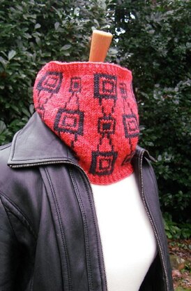 Cowl Whitman is a stockinette stitch cowl with a funky stranded color design. The cowl works up quickly in worsted weight yarn and begins and ends with some rows of twisted ribbing. The pattern is given in three sizes, but can easily be made larger. All the cowls pictured are in the small size.