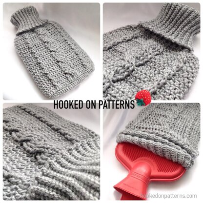 Crochet a cozy cable knit style hot water bottle cover, perfect for snuggling up with through the winter. These would also make great unisex gifts.