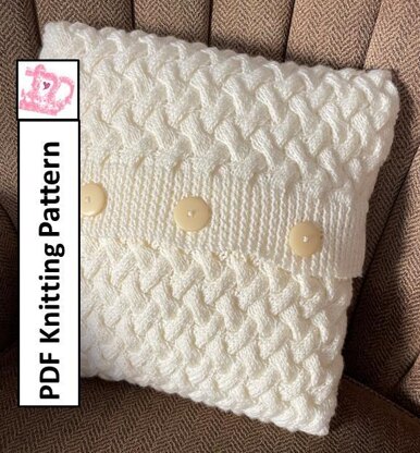 Knit using aran /#4/ worsted yarn, this knitting pattern is perfect if you love to cable! It creates a beautiful, textured pillow cover with three button closure.