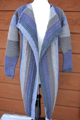 This is a cozy and warm long sleeve cardigan made with three Caron Big Cakes.