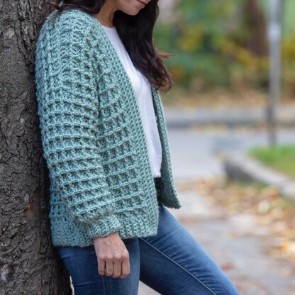 This pattern make a snugly and cozy cardigan with relaxed fit. The stitch pattern is easy to memorise and has a wonderful rich texture, making the sweater extra cuddly and warm. The sweater is reversible(last photo) because of the pattern stitch combination and invisible seaming.