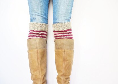A cozy striped boot cuff with ribbing in each color; can be flipped to wear two ways. A great stash busting project!