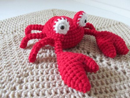 Finished Measurements Pinchers: 4 inches long Legs: 2 ¼ inches long Eyes: 1 inch tall Body: 3.5 inches from back to front, 1 ½ inches tall