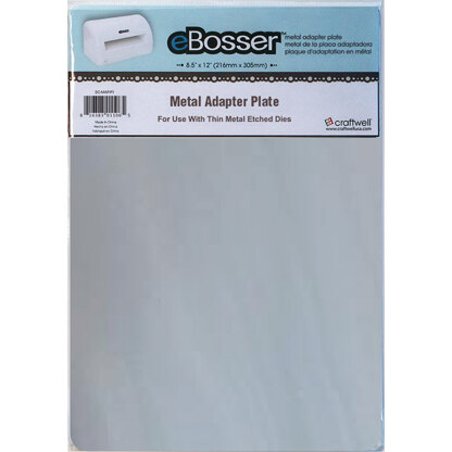CRAFTWELL-ebosser Metal Adapter Plate. Use this plate along with your eBosser to easily cut multiple layers of fabric. It is ideal for quilts, sewers and mixed media crafters. It is recommended to use with thin metal cutting dies. This package contains one 8-1/2x12 inch metal adapter plate. Imported.