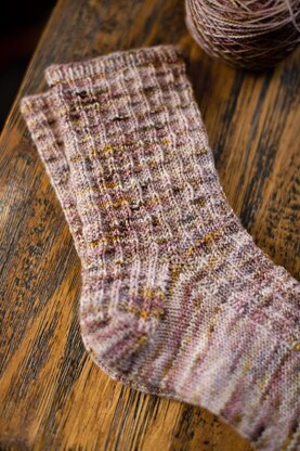 Craggy Shores is a beautifully textured sock pattern written for cuff down socks with instructions for a heel flap and gusset. The pattern is written for using magic loop, but if you're a seasoned sock knitter you could easily convert it.