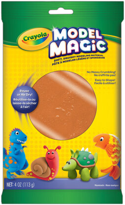 CRAYOLA-Model Magic Clay. It is easy to use and is lightweight. Can be reused or air dried. This package contains 4oz of clay. Color: Terra Cotta. For ages 3 and up. Nontoxic. Conforms to ASTM D 4236.