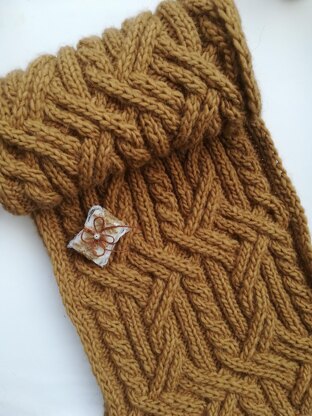 Knitted scarf with 4 stitches left and right cables. Yarns: Borgo de Pazzi Luna, 8 balls needed Measures: finished scarf measures 40x180cm, not blocked, adjustable Gauge: no matter Stitches to know: k, p, 4 stitches left and right cables (some cables are with purl stitches) Pattern has chart and written instructions.