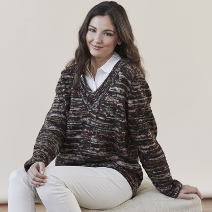jumper knit in Kaleidoscope featuring a v-neck, set-in sleeves, and garter rib
