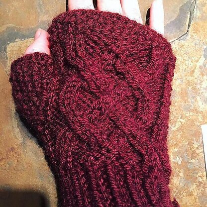 These fun aran mitts knit up quickly. The cable pattern on each glove is a mirror image of one another, making them fun to knit and wear.