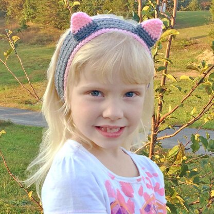 The pattern includes written instructions for kitty ear warmers. It includes six standard sizes, as well as a custom measurement formula to create a personalized fitting band.