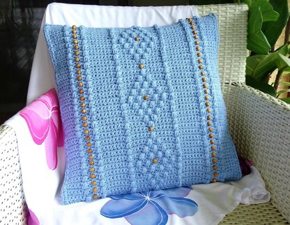 I have designed this easy beaded boho crochet cushion cover with basic crochet stitches using US terminology of chains, single crochets and the puff stitch. It is not complicated but still has an overall affect of looking fabulous. For UK and Australian crocheters there is a stitch conversion for you. I have also included a handy written and visual tutorial on the puff stitch.