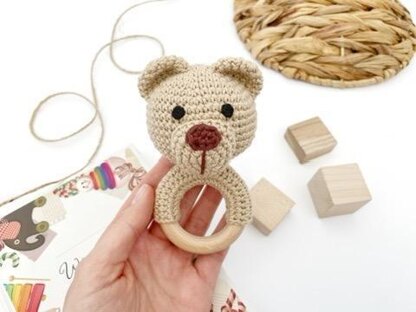 Crochet bear pattern baby rattle toy Amigurumi teething ring