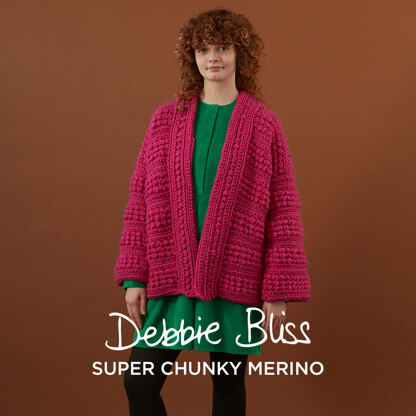 Debbie Bliss Super Chunky Merino boasts brilliant stitch definition, and it's no different for this Crochet Berry Stitch Jacket. Long, wide sleeves and with a gorgeous drape to this jacket, this is such a stylish garment that will work in a range of colours. If Hot Pink isn't for you, we love this jacket crocheted in shades Lilac, Leaf or Teal - the choice is yours!