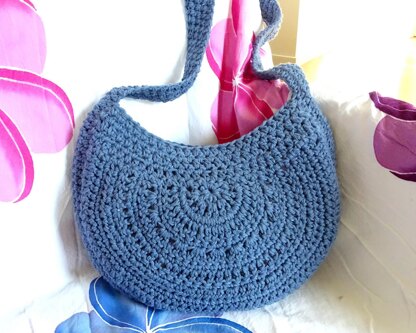 I have designed the bag in three pieces. A front and a back section, which are identical, and a long circular piece which forms the strap. The strap wraps around both sides of the bag giving it strength and durability. For this pattern I have used a 10 ply chunky cotton/acrylic but I have also made this bag in a 12 ply cotton and it looks just as good but will be a little larger.