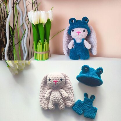 ***THIS IS A CROCHET PATTERN, NOT A REAL TOY*** Crochet pattern of a plush bunny in frog clothing. Toy size 15 cm ( 5.90 inches) Only English patterns. The PDF also includes a lot of photos and a detailed description. There are also links to video tutorials. There are many moments that are shown in the video. For these patterns, you need to have basic crochet and amigurumi skills, as well as be able to read crochet patterns. These templates are for personal use only. PLEASE DO NOT COPY, SHARE, TRANSLATE OR DISTRIBUTE THE TEMPLATE. You can sell bags you made, but be sure to credit the pattern maker.