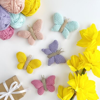 Crochet butterfly keychain pattern Amigurumi keyring bag charm Car mirror hanging decor