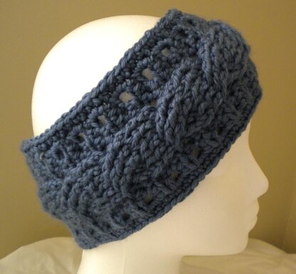 Seeing is believing. Everyone thinks this headband is knitted, but, surprise, it is crocheted. This pattern features a beautiful cable and eyelet edging, and includes 2 sizes. S/M and M/L. Circum: 21" (23"). Crochet Hook US I