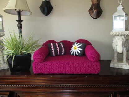 I have never done anything for pets. But I decided to make a little couch for my kitty Chance. He loves it. This little couch looks so much like the real thing. Cover itself is all done in one piece and then the sides and arms done and sewn on. The pattern is pretty basic and easy. Great for a beginner too. Size 18”x14”