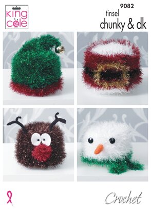 Crochet Christmas Toilet Roll Covers in King Cole Tinsel Chunky & Dollymix DK - 9082 - Downloadable PDF