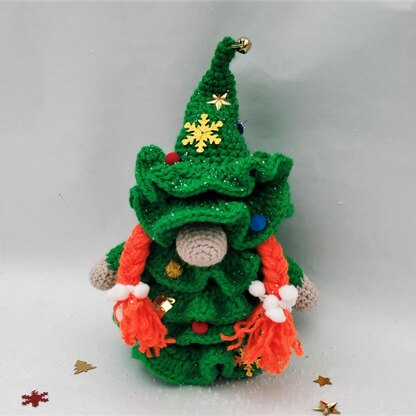 Crochet Christmas tree gnome pattern.