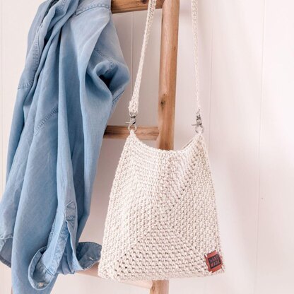 Add some charm to your outfit by adding this stylish crochet crossbody bag. This crochet bag pattern is cute and simple to make. It’s the perfect little bag to tow around if you just want to bring the necessities. This detailed 9-page PDF pattern includes step-by-step photos and a guided video tutorial. Details: - Pattern is written in standard US terms. - Basic knowledge of beginner stitches is needed to make this pattern. - Bag straps are interchangeable. - Size of bag, 8 1/2” wide x 8 1/2″ long. Materials Needed: - 2 skeins of Hobby Lobby Yarn Bee Cotton Et Lin in the color Parchment (Weight 4/ 3.5oz, 180 yds), a total of 360 yards or you can use another worsted weight yarn. - 5.0 mm (H) crochet hook. - Stitch marker (optional). - 2 Swivel hooks. - Darning needle. - Scissors.