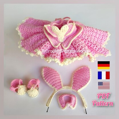 Crochet doll clothe pattern for Astrid, Doll outfit bunny, Amigurumi doll outfit pattern for a doll 30 cm/11 inch English, Français, Deutsch