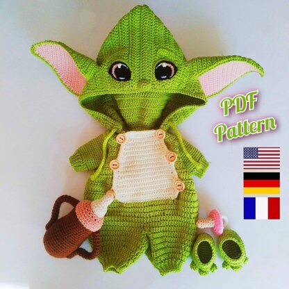 Crochet doll clothes pattern, Crochet doll outfit Baby Yoda, Lulu Outfit doll pattern 12 inches (English, Deutsch, Français)