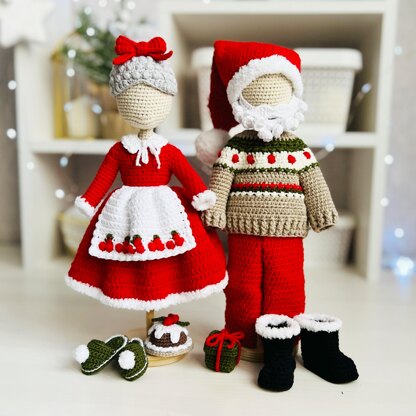 Crochet doll clothes, pattern, doll clothes, amigurumi doll outfit, Santa and Mrs Claus outfits