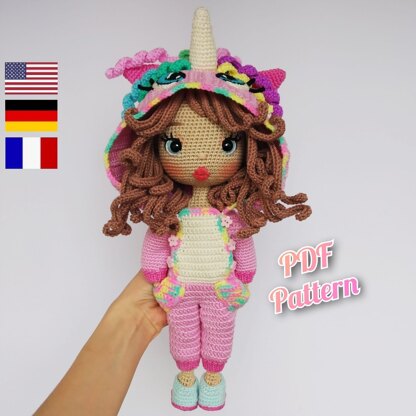 Crochet doll pattern amigurumi, Astrid, Crochet Doll with clothes (Deutsch, English, Français)
