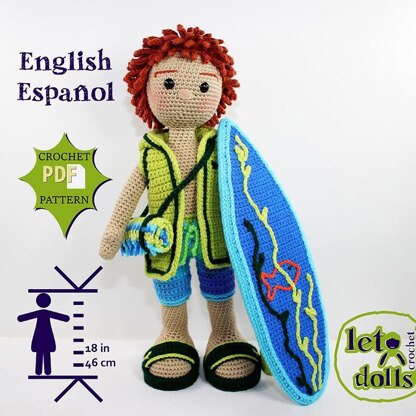 Crochet doll pattern, Amigurumi doll pattern, Medium doll, 18"/46cm, Finn