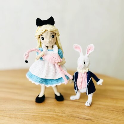 Crochet doll pattern, amigurumi doll with clothes, crochet bunny, amigurumi bunny, Alice and White rabbit