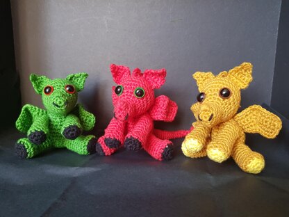 A crochet pattern to make a small dragon. Add a keyring or a loop and hang it from your car mirror.