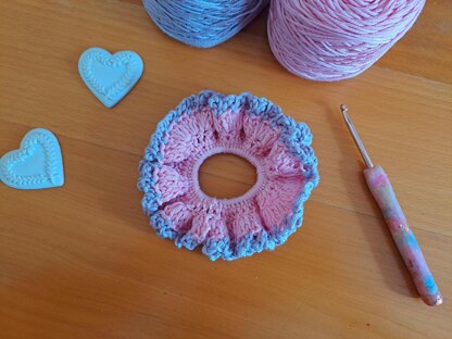 This crochet pattern is very easy to follow, and creates the most beautiful and easy scrunchie with a lovely feminine vibe. It's super beginner friendly, and can be made up in the space of just over an hour! This crochet scrunchie features a lacy design, and features two different colors.
