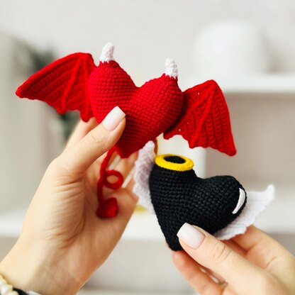 Crochet heart pattern, amigurumi heart pattern, Valentine's crochet, heart ornament pattern, Angel and Devil