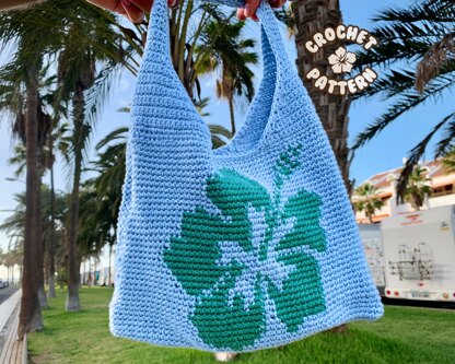 Cute coconut girl aesthetic bag with hibiscus flower pattern on both front and back of the bag, perfect for the girls who love a touch of island charm in their style.