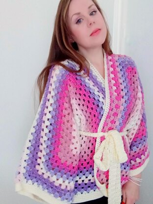 This listing is for a very easy to crochet hexagon cardigan pattern. It is very easy to follow pattern, with plenty of photos. This crochet cardigan features a simple hexagon granny hexagon design, a lovely and elegant belt, and a Kimono inspired shape with wide sleeves and tapered waist.