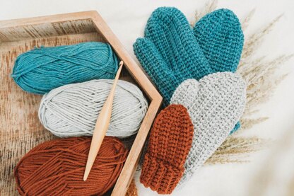Keep those fingers warm this season and learn how to crochet a mitten. This crochet mitten pattern is done as one piece without seaming and has a unique knit-look stitch. This pattern is designed for the whole family! From baby to adult, everyone will be keeping their hands cozy.