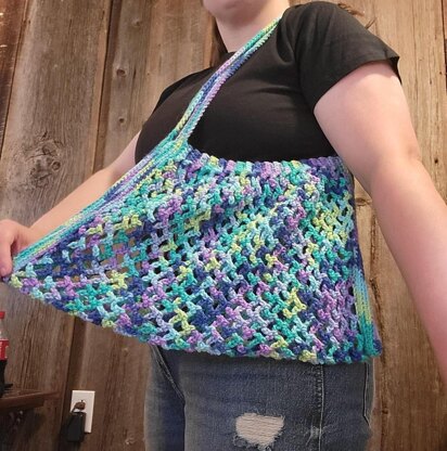 Crochet market bag uses basic stitches. It can also be adjusted to be larger or smaller. It has been tested with different yarn and hook sizes as well.