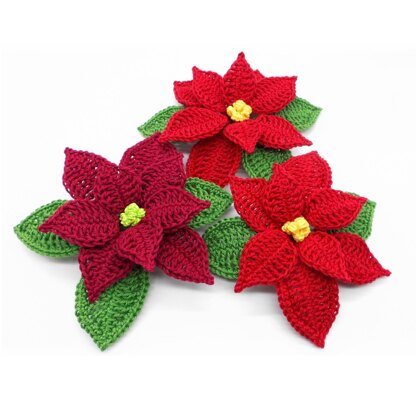 The PDF file includes not only the written crochet explanation for 2 variations, but also the crochet charts and many detailed photos, so that you can successfully recreate the poinsettia very easy, step by step.