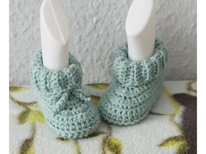 In the crochet patten, the manufacture of the Baby Booties is described in Englisch (US) and with numerous pictures on a total of 7 pages.