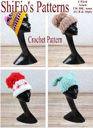 Crochet Pattern ladies hats UK & USA Terms #244