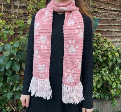 The are two different options for how the scarf can look as shown in the photos. The paws can either be going up on one side of the scarf and down on the other, or the paws can be facing upwards on both sides. The pattern covers both options.