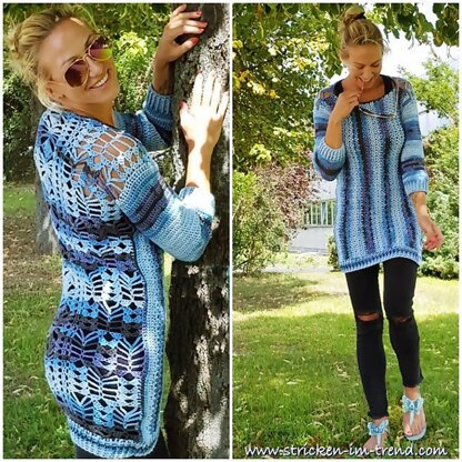 The TONDO #5 crochet sweater combines 4 beautiful stitch patterns and features a stunning open lace back design.