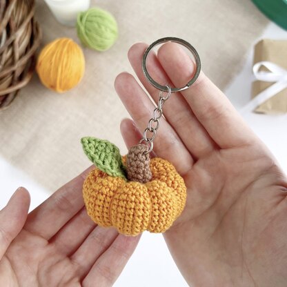 Crochet pumpkin keyring Amigurumi pattern Halloween ornament Car mirror hanger Bag keychain charm