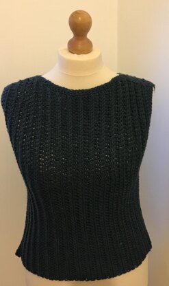 This is a pattern for a simple slipover/vest. No shaping required, just two pieces worked side to side in a mock rib stitch. It has a slash/boat neck and the back is longer than the front. An easy make for winter evenings.