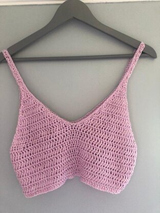 A loose fitting crop top made with an affordable cotton yarn to keep you cool this summer.