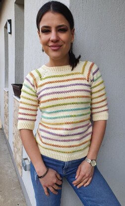 You can make this sweater for any size. It is easy to make and perfect for spring. Yarn : Alize cotton gold code 01 for the ivory color and Alize cotton gold batik code 3304 (variegarded yarn ) Crochet nr : 2.5 mm This sweater is for S size and I use almost 3 skeins for ivory color and 1 and a half for a variegarded yarn .