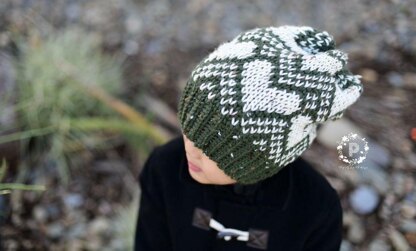 This beanie uses 2 colors for a lovely heart design. It’s the perfect design this Valentine’s Day! Mix up the colors and it’s perfect for the winter season and is great for the whole family!