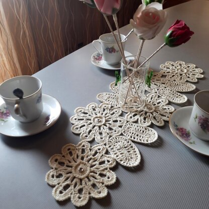Finished measurements:- Legth of the finished item is customizable! Length of the runner on primary photo is 66 cm [23.6’’] and width 20 cm [7.9’’] with fingering weight yarn used and hook 2 mm.