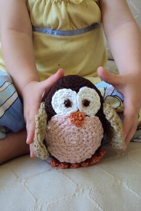 This little baby owl is crocheted using worsted weight yarn in colors of choice and a size d (3.25 mm) hook.